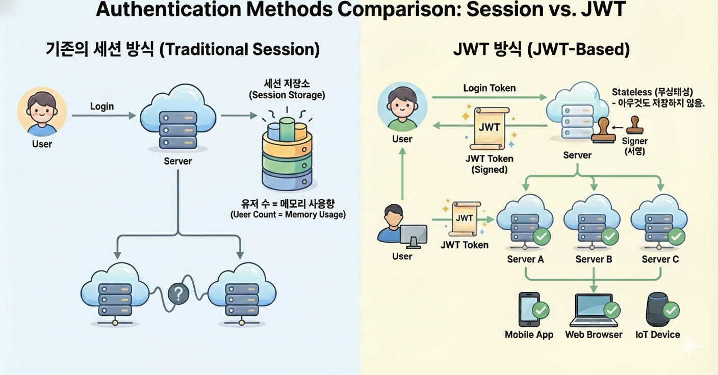 그렇다면 기존의 세션(Session)방식과는 무엇이 다른가?